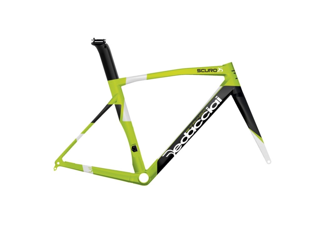 Celokarbónový monocoque rám z vlákien T700 a T800. Scuro25 sa vracia k historicky nejúspešnejšiemu rámu ktorý sa stal „LEGENDOU“ v ponuke DEDACCIAIStrada. Rám bol vyvinutý a skonštruovaný tak, aby útočil na nejnáročnejších jazdcov, ktorí vyžadujú moderné poňatie cyklistiky a neuspokoja sa s priemerom. Mohutnosť a Aero konštrukcia rámu nekorešponduje s hmotnostou – tá je len 950 g pre rám veľkosti M! Túto rámovú sadu, by sme vďaka jej pohodliu nezaradili priamo medzi pretekárske náčinie. Jej cieľová skupina sú jazdci ktorí trávia dlhé hodiny v sedle a chcú si jazdu užiť bez kompromisov na kvalitu a riadenie bicykla.